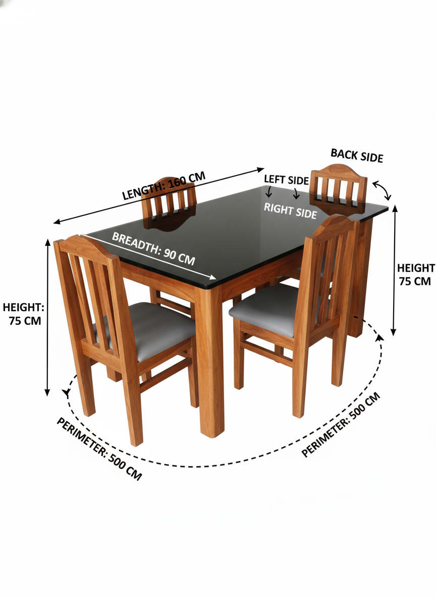 Bring timeless elegance and lasting strength to your dining space with this 4 Seater Solid Teak Wood Dining Table, crafted from premium-quality teak wood known for its durability, rich grain, and natural resistance to wear.