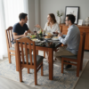 Designed for modern homes as well as traditional interiors, this dining table features a warm golden-brown tone with visible natural wood grains that enhance its premium look. The compact yet comfortable size makes it ideal for small to medium dining areas, apartments, and family homes.